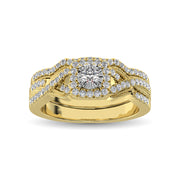 This beautiful Bridal is available in 10K White Gold. There are 72 round diamonds with a total carat weight of 1/2 Ct.Tw. set in a micro prong setting.