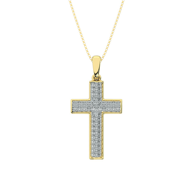 10K Yellow Gold 1/4 Ct.Tw. Diamond Pave Set Cross Pendant