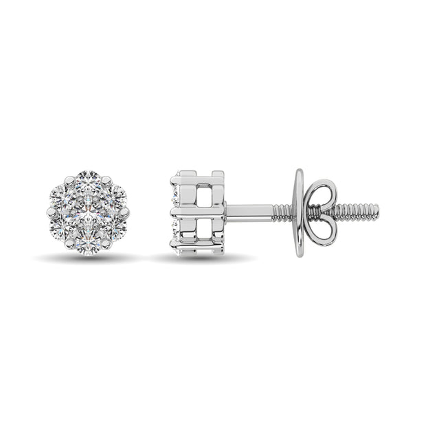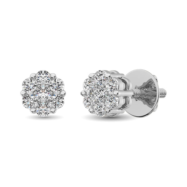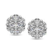 14K White Gold 1/2 Ct.Tw. Diamond Flower Studs Earrings