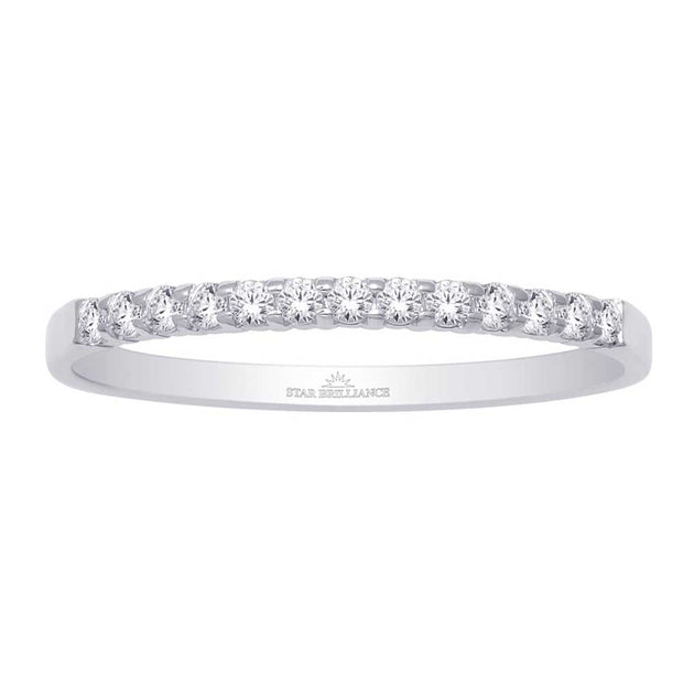 This amazing Ladies Band is available in 14K White Gold. There are 13 round diamonds with a total carat weight of 1/3 Ct.Tw. set in a machine setting.