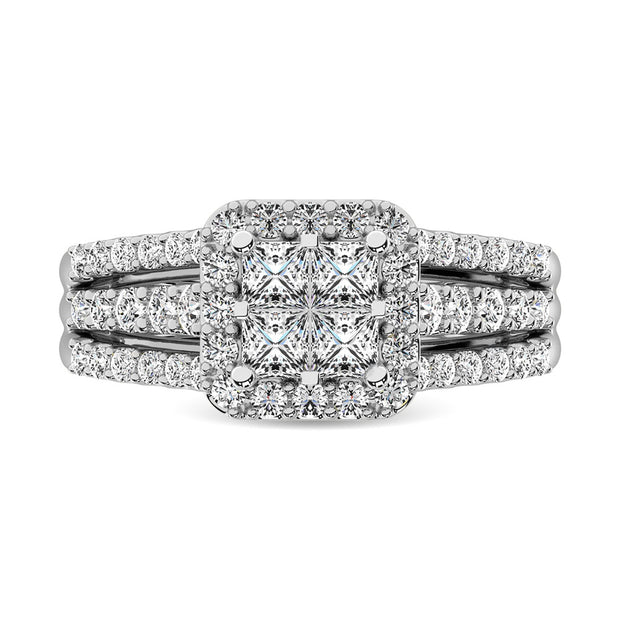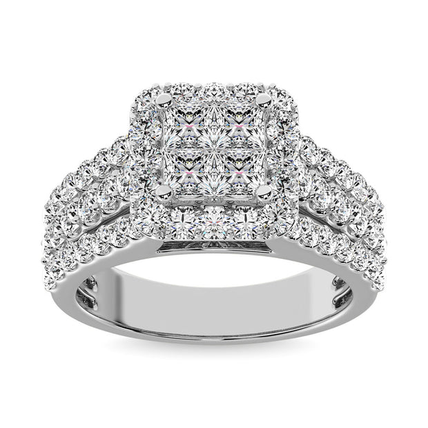 This stunning Engagement Ring is available in 14K White Gold. There are 58 round diamonds with a total carat weight of 3 Ct.Tw. set in a prong setting.