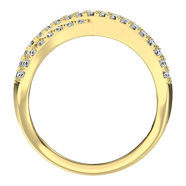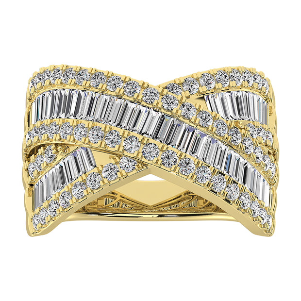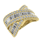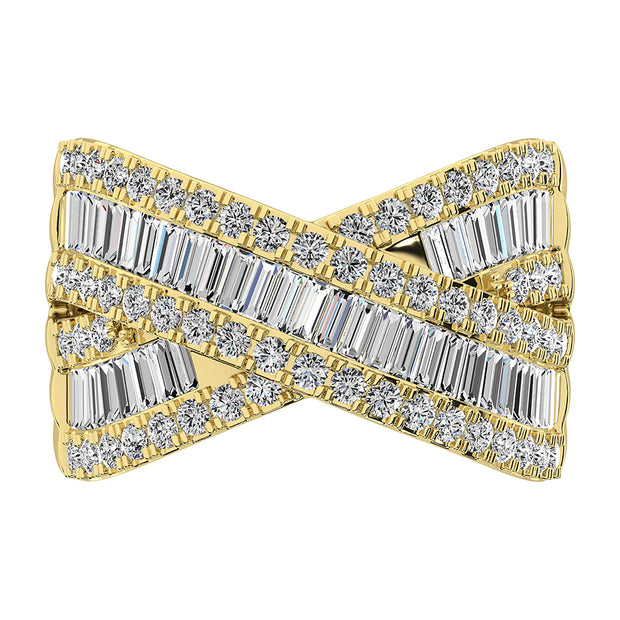 14K Yellow Gold 1 1/2 Ct.Tw. Diamond Round and Baguette Crossover Ring