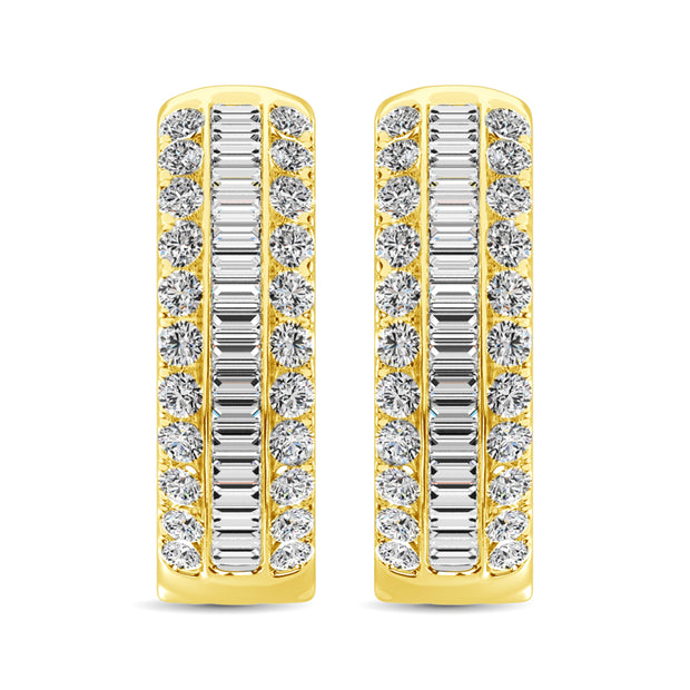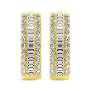 14K Yellow Gold Round and Baguette Diamond 1/2 Ct.Tw. Hoop Earrings