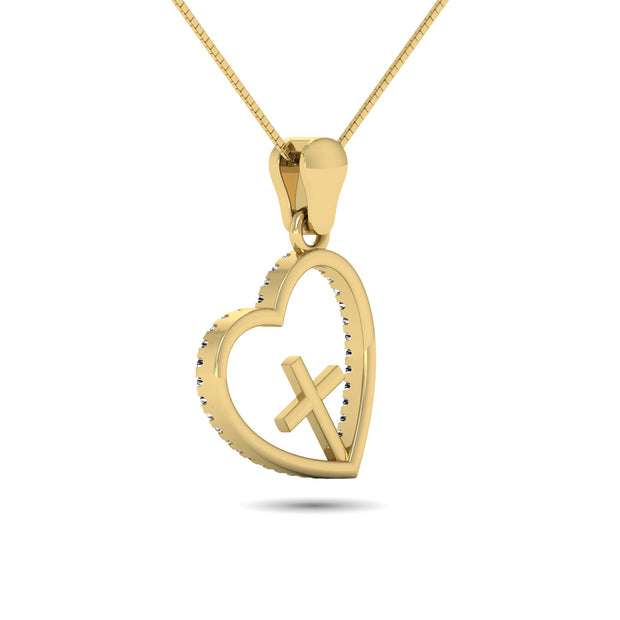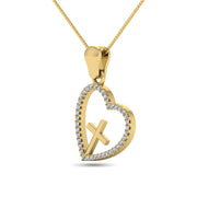 This 10K Yellow Gold heart pendant symbolized the faith and love together. This open Heart Pendant is centered with a Plain traditional cross pendant and studded with 1/8 Ct.Tw. round shape diamonds. This heart suspends close to hers along an 18.0-inch rope chain that secures with a spring-ring clasp.