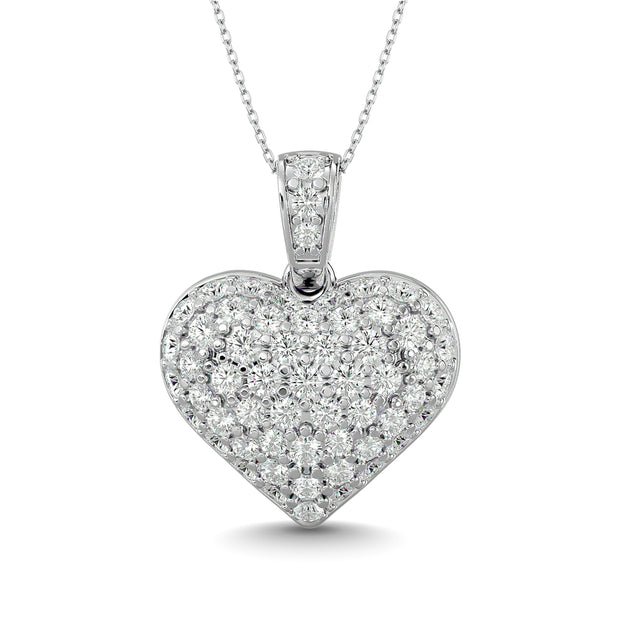 She'll adore the dazzling look of this remarkable diamond heart pendant. Crafted in cool 10K white gold and Radiant with 1 Ct.Tw. t.w. of diamonds and a brilliant buffed luster, this pendant suspends 18.0-inch chain that secures with a spring-ring clasp.