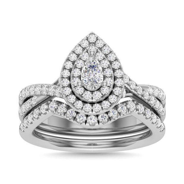 Diamond 1 Ct.Tw. Pear Cut Bridal Ring in 14K White Gold