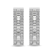 Diamond 3 1/8 Ct.Tw. Round and Baguette Hoop Earrings in 14K White Gold